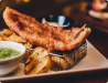 Small portion of fried carp with mashed potatoes