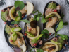 Topped with cucumber and roe
