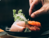 Topped with cucumber and roe